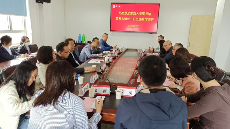 5月22日上午,南京大学图书馆馆长黄贤金、副馆长兼党总支副书记罗钧、副馆长邵波一行12人来我馆调研。党委书记、馆长钱万里,副馆长丁瑶,馆长助理储开稳、张云坤及各部室主任参加了来访接待。