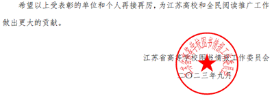 9月22日,“悦读·苏香”暨江苏省高校图书馆阅读推广精品案例交流会在南京大学仙林校区召开。大会表彰了48项江苏省高校图书馆阅读推广“优秀案例”、10名江苏高校图书馆阅读推广“优秀馆长”和29名“优秀馆员”。我馆选送的“苏州大学图书馆‘行走的阅读’”荣获优秀案例,丁瑶副馆长荣获优秀馆长并作大会交流报告,读者服务部孟良荣主任荣获优秀馆员。