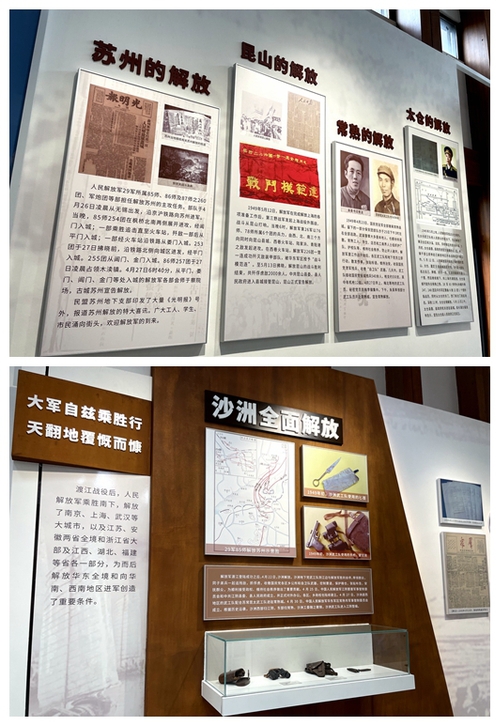 双山岛渡江战役展示馆是江苏省党史教育基地,展馆以“千里渡江最东端,苏州解放第一枪”为主题,分五个部分——序厅“千里渡江最东端,苏州解放第一枪”“军民同心耸双山,势如破竹过大江”“大军自兹乘胜行,天翻地覆慨而慷”尾厅通过珍贵的历史文物、图片和生动的视频向我们全方位地展出一段波澜壮阔而又惊心动魄的历史。支部全体党员在双山渡江战役烈士纪念碑重温入党誓词,以铿锵有力的誓言,展现践行初心使命的决心。生在幸福时代的我们应铭记历史、感怀先辈,奋斗新时代,奋进新征程