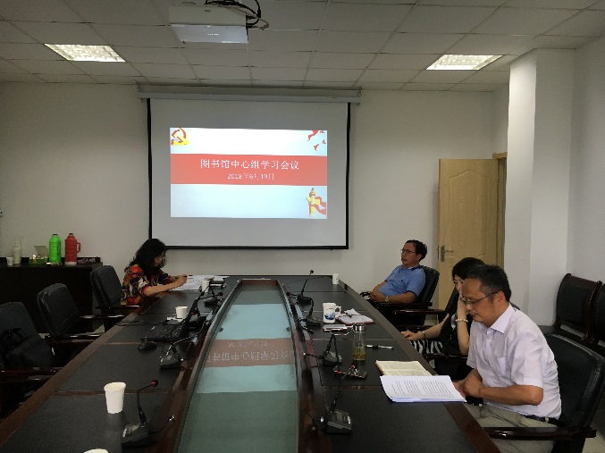 2018619日下午,图书馆党委理论学习中心组在东三楼会议室召开了专题会议,图书馆党委理论学习中心组成员、馆务会成员参加了会议。会议由党委书记钱万里主持。