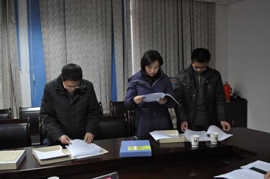 考评小组专家在检查台帐