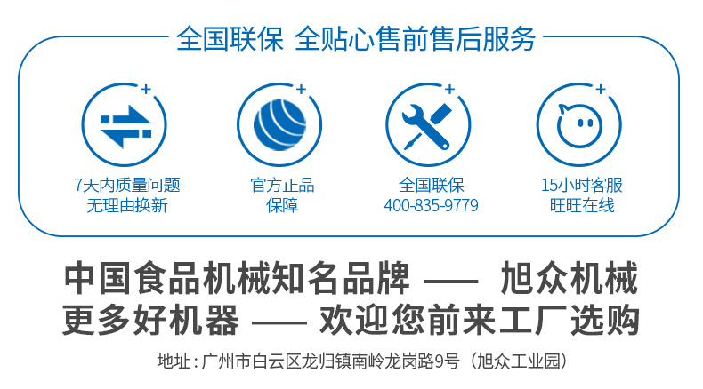 广州旭众食品机械有限公司是一家集科研开发,生产设计,营销服务为一体的现代化生产企业。现代化生产车间,精湛制造技术,所产机械历经市场重重考验,不断赢得海内外客户的赞誉。